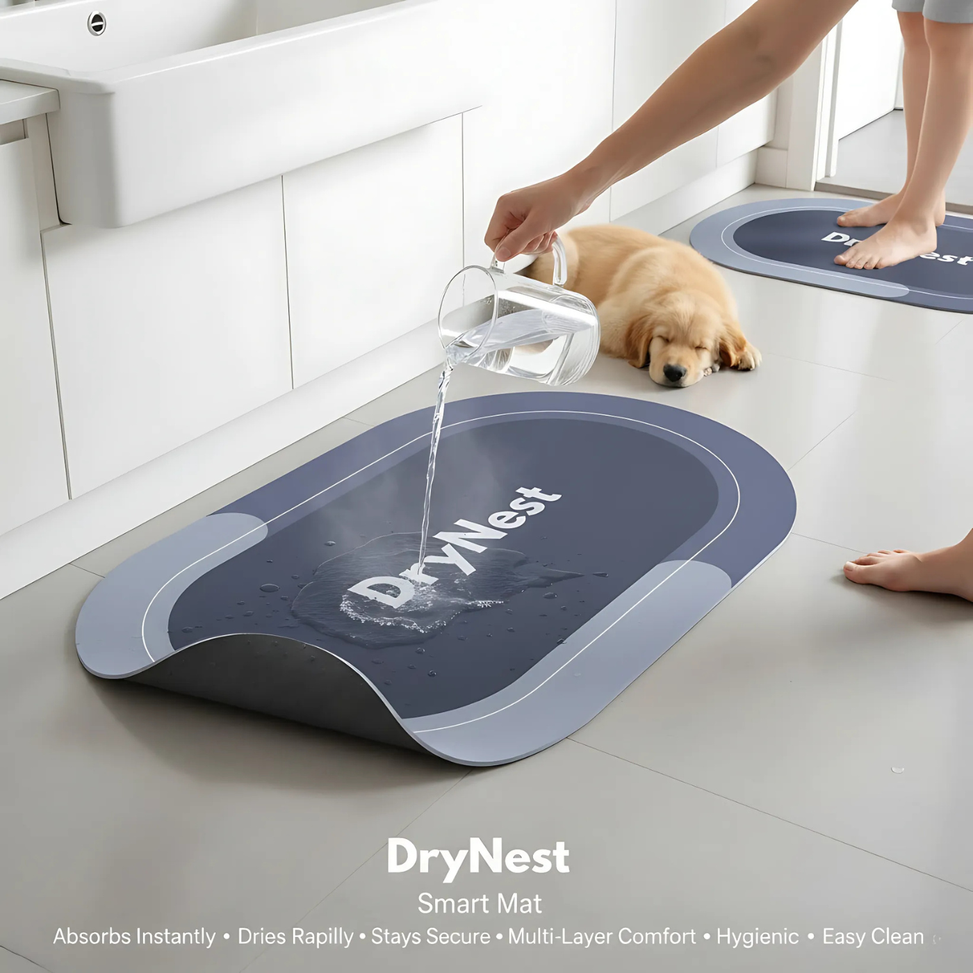 DryNest Smart Mat soaks up spills instantly, dries fast, and stays securely in place. Its soft, multi-layer design keeps bathrooms, kitchens, pet areas, and entrances dry, slip-free, and hygienic while staying easy to clean and fresh every day.